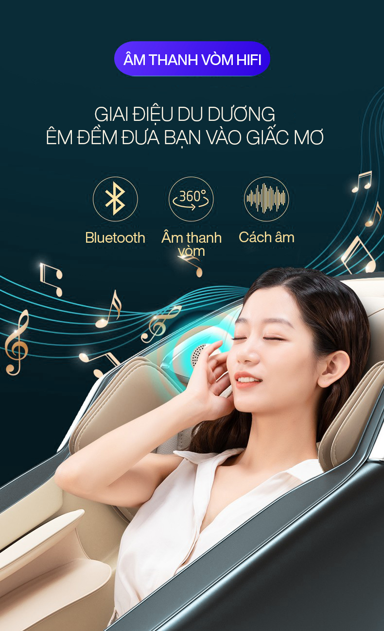 Massage thư giãn tâm lý: Âm thanh thư giãn kết hợp với chế độ massage giúp tinh thần bạn thư giãn, giảm lo âu và căng thẳng.