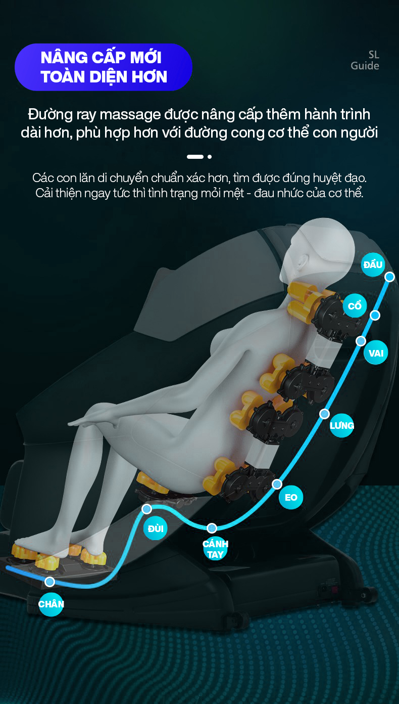 Con lăn 4D nâng cấp cùng hệ thống đường ray ôm sát cơ thể – Massage sâu và chính xác hơn