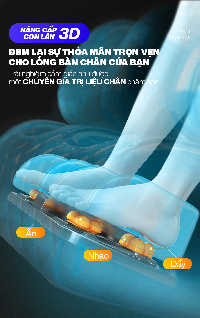 Kỹ thuật massage vòm chân: Các con lăn giúp massage và giảm đau nhức cho vòm chân, giúp thư giãn đôi chân mệt mỏi.