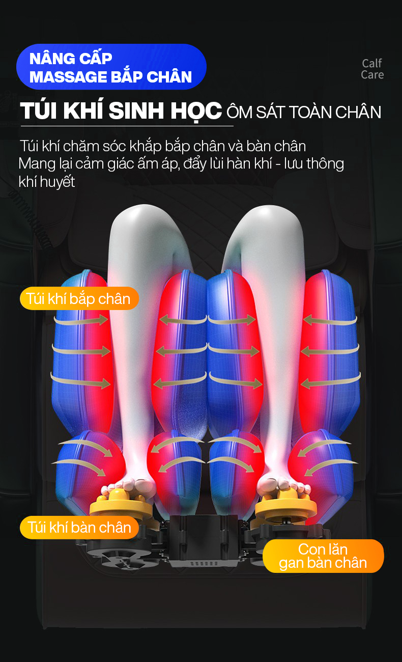 Massage bắp chân: Các túi khí xoa bóp và làm dịu các cơ bắp chân mệt mỏi, giúp tăng cường lưu thông máu.