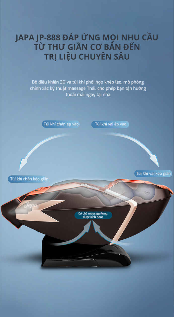 Với sự kết hợp giữa thiết kế hiện đại và công nghệ massage tiên tiến, Ghế Massage Japa JP-888 mang đến giải pháp toàn diện cho việc chăm sóc sức khỏe. Hãy trải nghiệm và tận hưởng những lợi ích tuyệt vời mà sản phẩm này mang lại ngay hôm nay.