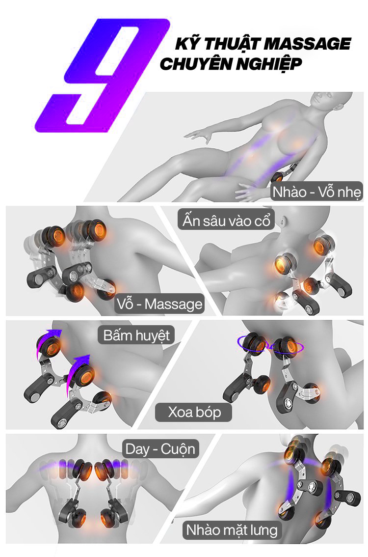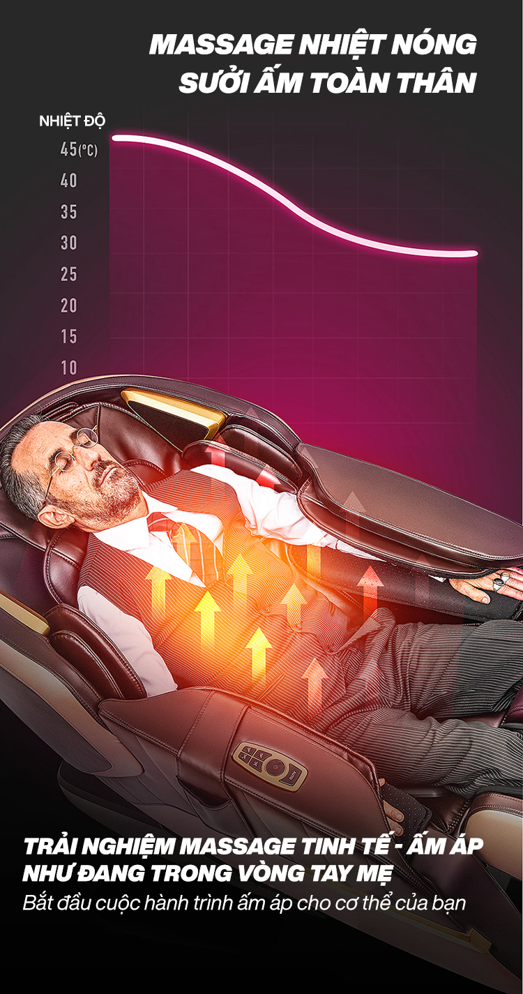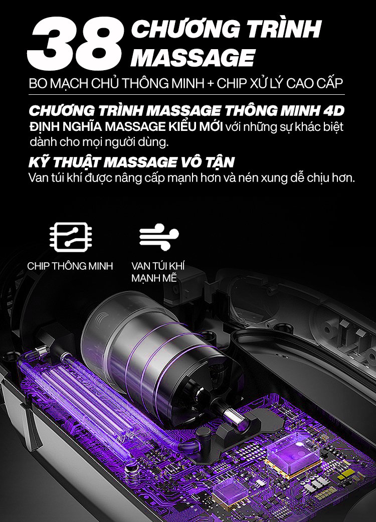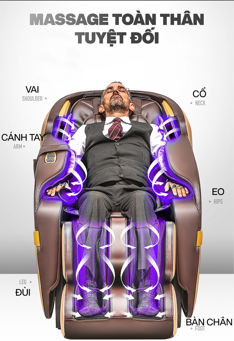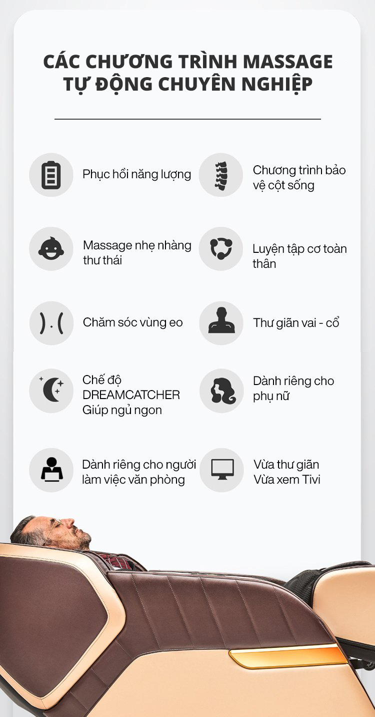 Tính năng thông minh: Hệ thống massage tự động, kết hợp massage 4D và túi khí, mang lại trải nghiệm massage vượt trội.